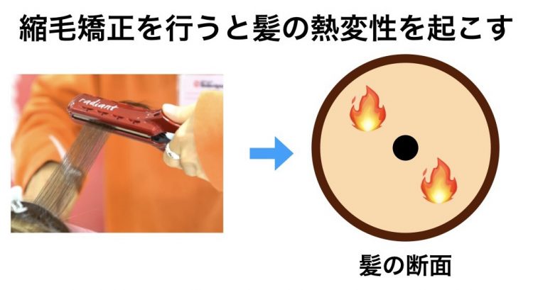 これは縮毛矯正のアイロンワークに問題があるため、1回行っただけでも過度な熱変性を引き起こしてしまうからです。